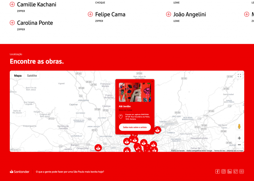 Projetos que envolvem criadores e arte em plataformas diferentes, mexem com a gente de um jeito especial. Esta criação do Santander e agência Suno Creators, foi muito incrível. A primeira caixa eletrônico parade do mundo em comemoração ao aniversário da cidade de São Paulo. Ficamos muito animados com o convite para registrar todo o processo (fotos e vídeos) e desenvolver o site do projeto.